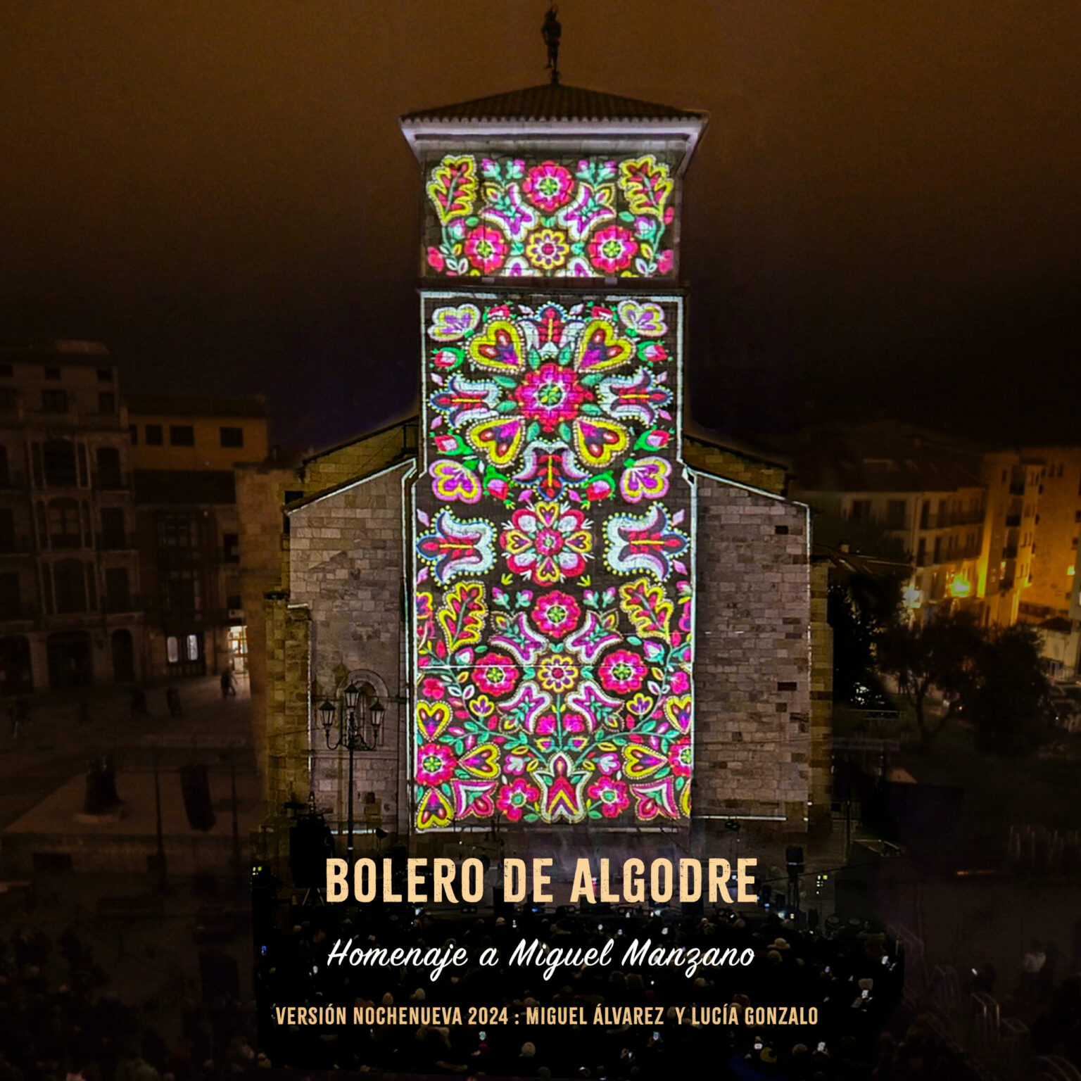 El viernes 7 de febrero a las 00:00 se podrá disfrutar esta versión de El Bolero de Algodre cantada por Miguel Álvarez y Lucía Gonzalo en las plataformas digitales de ambos artistas incluyendo, además, un videoclip con imágenes del propio espectáculo Nochenueva que tuvo lugar el pasado 28 de diciembre, en el que los asistentes pudieron disfrutar la versión con la letra proyectada en la fachada de la Iglesia de San Juan Bautista para facilitar, al unísono, cantarla por todas las personas congregadas.